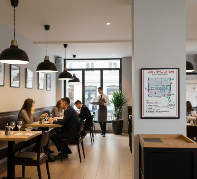 Un plan d’évacuation doit être clairement affiché dans chaque salle accessible.